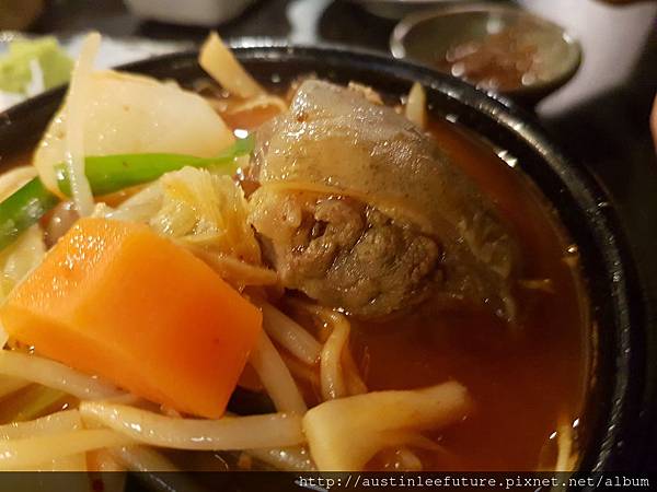吃了起司麻糬燒,又一鍋泡菜牛尾湯,還有兩大塊
