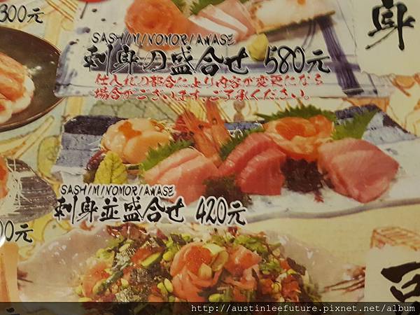 刺身,綜合生魚片(此次兩人體驗提供小皿,品項價格420元)