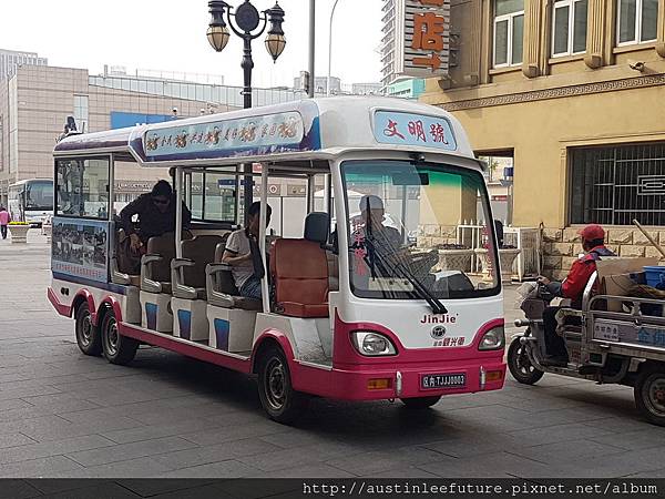 這觀光電瓶車在和平路上開,隨招隨停,單一價格是3塊人民幣,其實算貴了(一般公交車坐老遠也才1~2元人民幣)