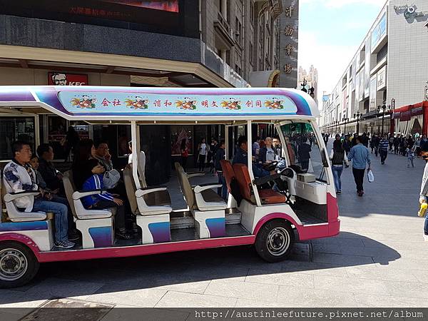 在和平路是步行街,也就是只准行人通行,唯一例外就是這觀光電瓶車