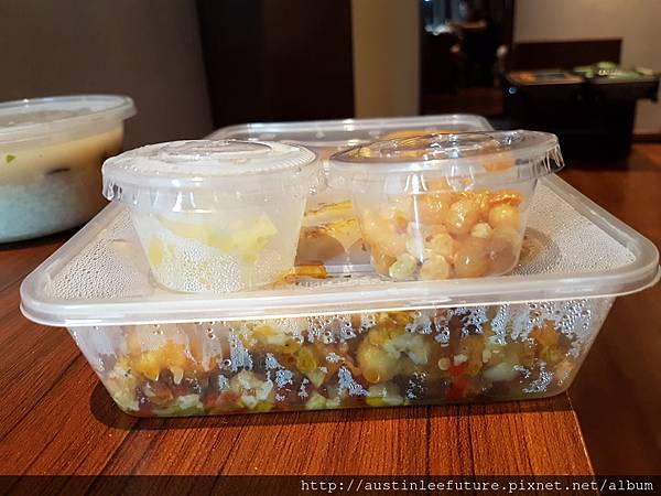 要是沒吃過,單純以手機照片來訂購,真的是踩地雷啊!這一餐粥很雷,那個奶油田雞也很雷,因為那個奶油超油的,是乳瑪琳的那種人造奶油味....最厲害的是連炸小饅頭也雷,整個像在喝油一樣,就完全沒有一樣覺得好吃。價格大約總價台幣400塊,其實價格我可以接受,但就是品質太差了!要叫外賣最好還是真的有吃過知道是怎樣東西的比較好