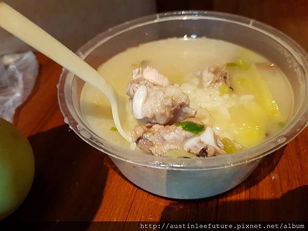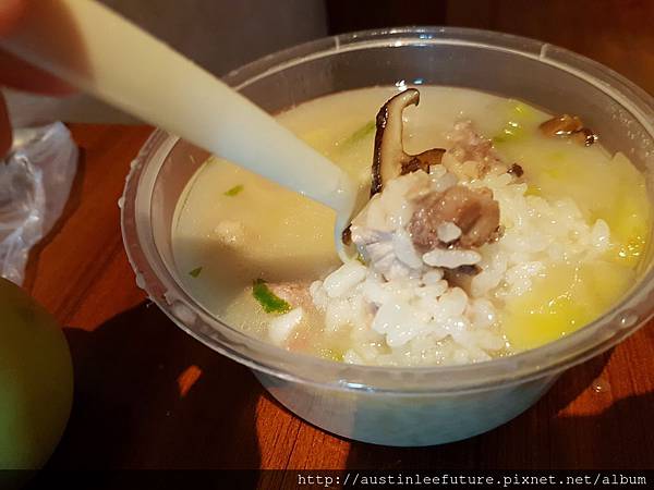 買了排骨粥與奶油田雞,粥還有送配料