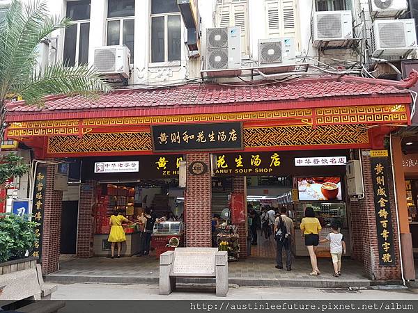 這間店就是黃則和花生湯的總店,門口有一塊大石碑刻著歷史
