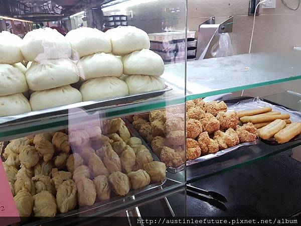 開口笑,炸包子之類的,還有右手邊的大陸油條(大陸油條都像甜甜圈軟Q的口感),以及上面的包子,完全就是食物大亂鬥~