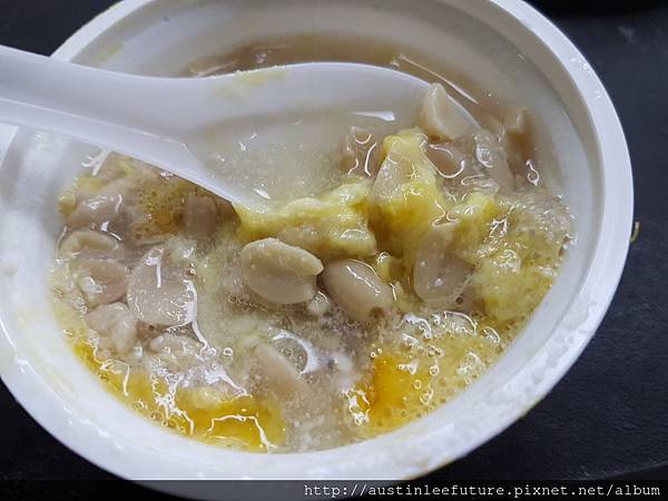 他們的花生湯有兩種,一種是有加蛋花的,一種是純花生湯,都是甜口味,有加蛋的當然比較貴,只要你沒有特別說,他們都會給比較貴的花生湯加蛋