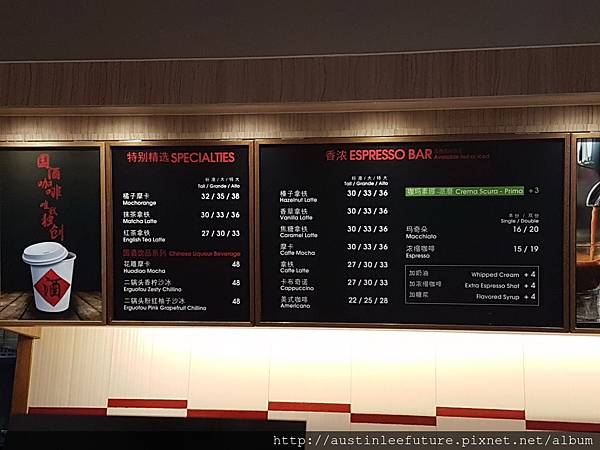價位,其實在大陸的咖啡都不便宜,大約都是台灣星巴克價格等級
