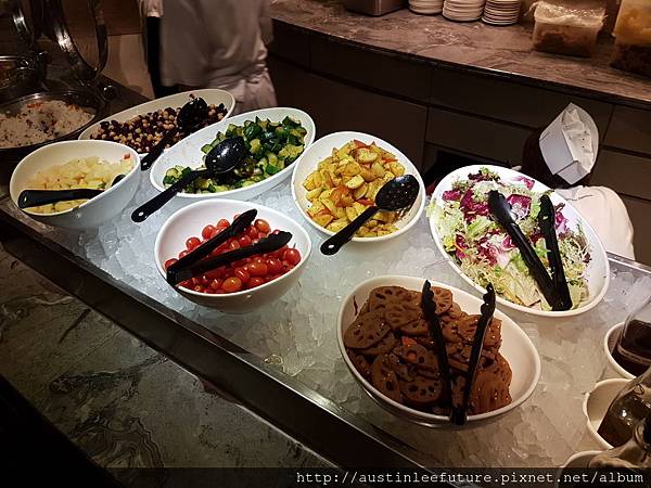 主菜區分為兩個區塊,左邊是現煮區,右方是生菜沙拉與主食熱菜區