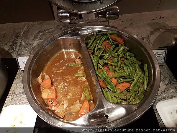 主菜與熱菜(剛好照相時主菜被拿光,不過補的速度也很快啦),被拿光的主菜是咖哩馬鈴薯雞肉