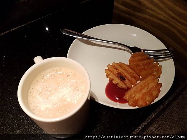 然後拿鐵咖啡配不怎好吃的薯格格,後來五月這次就這樣,登機去