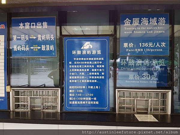 這裡的窗口住要是針對廈門市民販售,但一般遊客也是可以買票,是左邊那種兩段式票,要先跑去海滄碼頭,再從海滄碼頭去鼓浪嶼,我想不是在海滄碼頭的人應該不會這樣搞,所以遊客還是乖乖的到廈門郵輪中心廈鼓碼頭那裡去搭渡輪吧