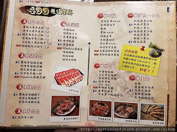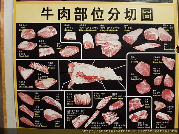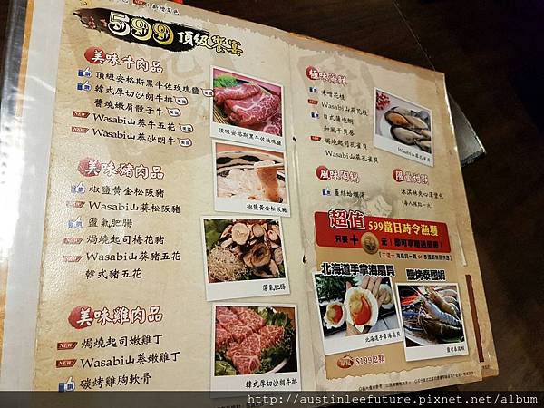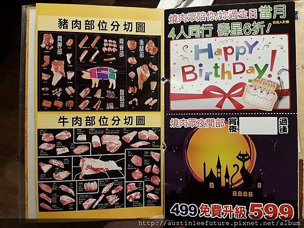右邊是優惠資訊,左邊是牛肉豬肉的部位說明