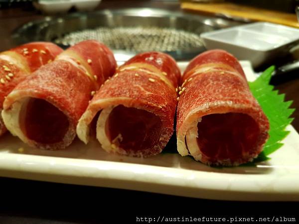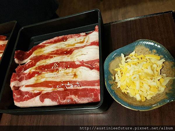 牛五花因為油脂豐富,所以有搭配比較調味重的選擇,像是右邊出現的起司