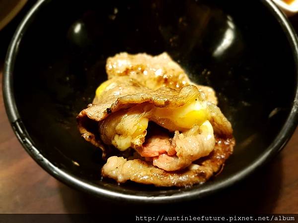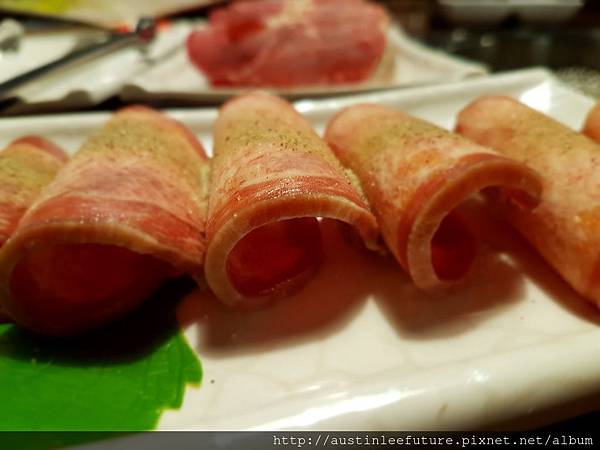 當然還有Wasabi山葵牛五花口味,就是來了一碟山葵醬汁,畢竟我是不吃那個的,所以疏忽之下就漏拍了,也沒辦法說這樣搭配起來好不好吃,不過我想山葵的辛辣應該可以調和牛五花的油膩吧