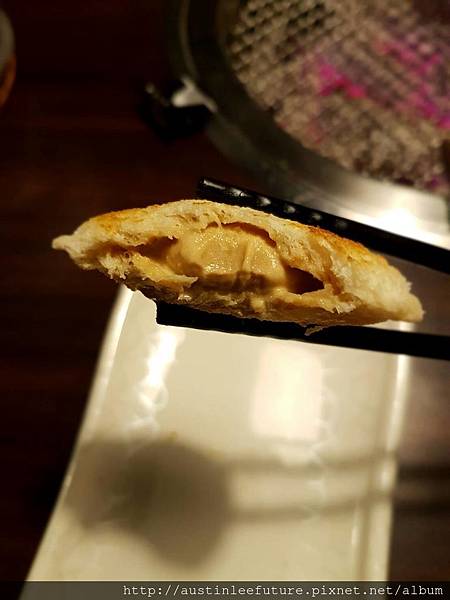 像這樣,中間夾了起司,不過牛五花畢竟還是太油,其實加了起司味道還是差不多就是了