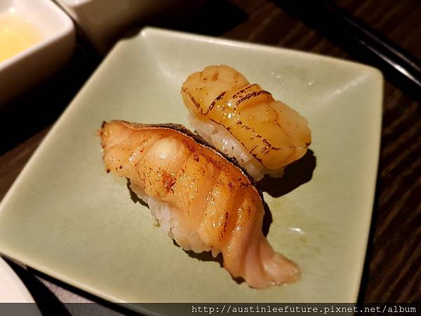 炙燒到半熟的鮭魚以及干貝握壽司,像我這種不吃生食的人也可以入口,滿好吃的!