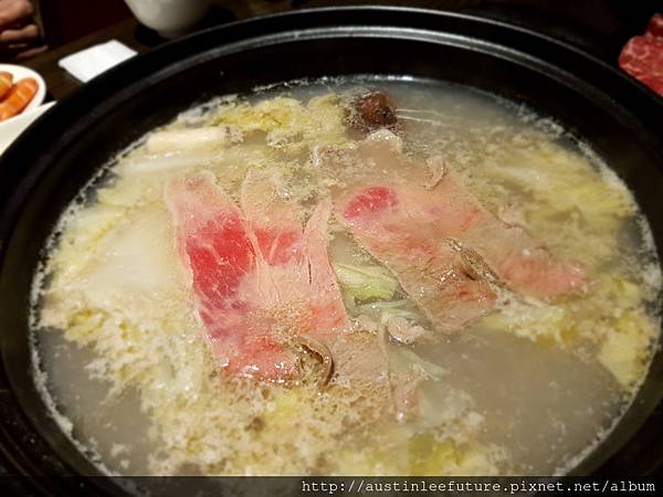 我想,周末夜沒有全滿應該是因為它的價格稍稍偏高吧,價位是 1280外加一成服務費,所以總價是每人 1408元,跟絕大多數主打吃到飽火鍋的價位區間相比是了一些,不過個人覺得值得,讓我們繼續看下去