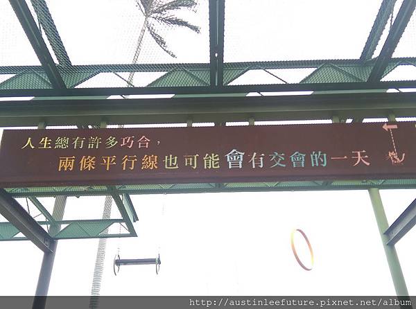 是以鋼索懸空吊掛,晚上配合光影別有一番味道,當然在颱風侵襲前都會預防性的拆下,像上次的颱風來臨前