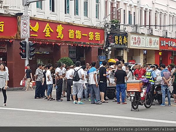 中途還遇到一群人圍觀,似乎是城管人員與民眾的交通事故糾紛