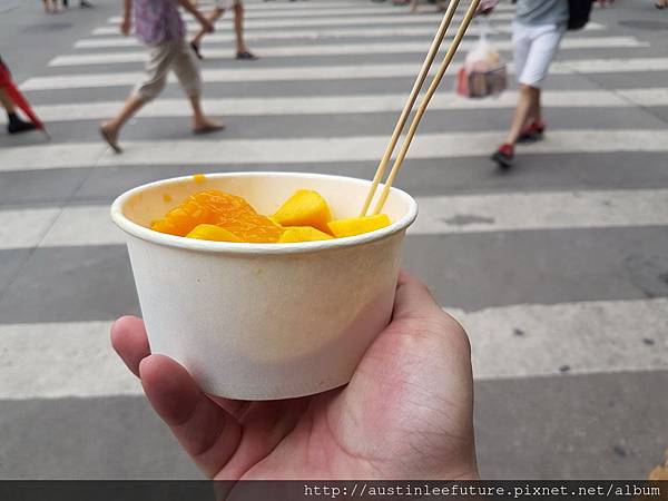 像這種一盒約人民幣10元,當然是冰在冰箱裡不是現削的口味會差一點,只是貪圖冰涼才會買這種已經削好裝盒的