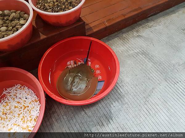 途中間過海鮮店,有看到鱟(這金門廈門地區可以找到的活化石生物,血是藍色的,可以食用但是盡量別去吃它,算保育類動物)