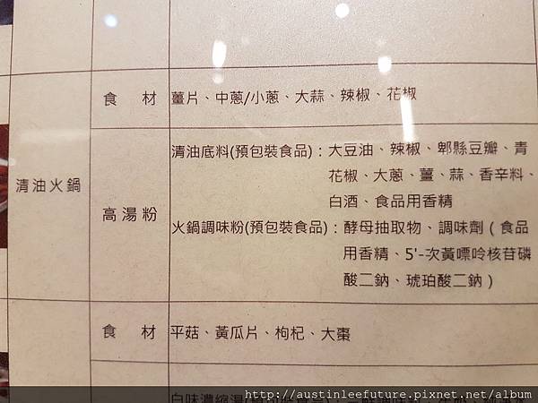 台灣的法令似乎是因為鼎王事件之後有修改,所以這些湯頭底料的內容物成分都需要公告