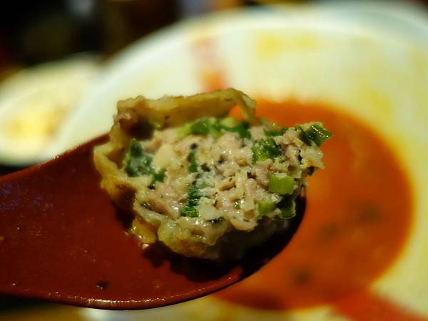 外頭是很類似雲吞用煎餃或是用炸的方式處理,內部的餡料我覺得普普,可能是我不太喜歡韭菜的關係