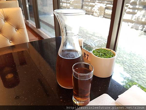 回到桌上,這是套餐附的涼茶,就像王老吉那種大陸涼茶的口味,不難喝,是冰的