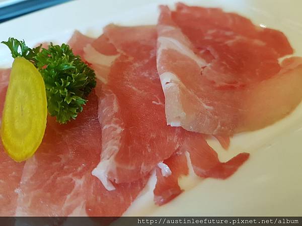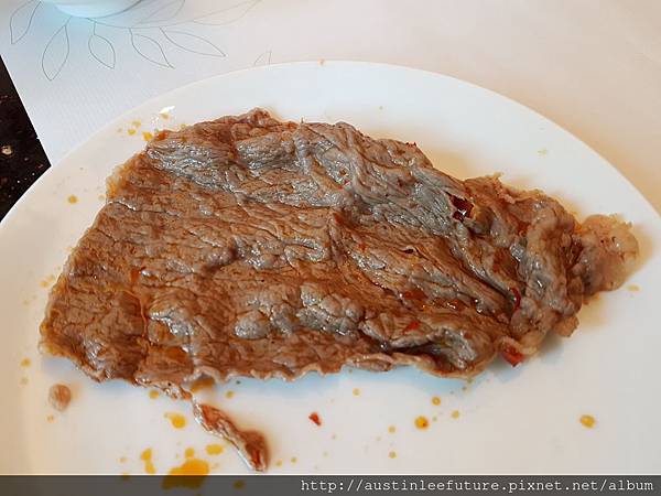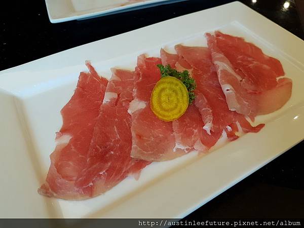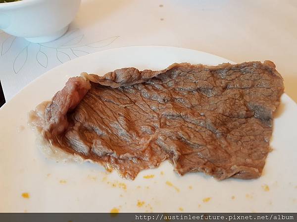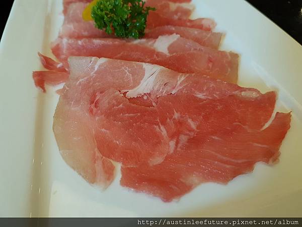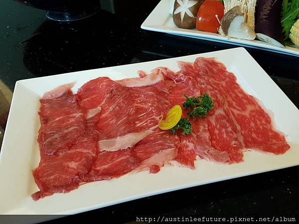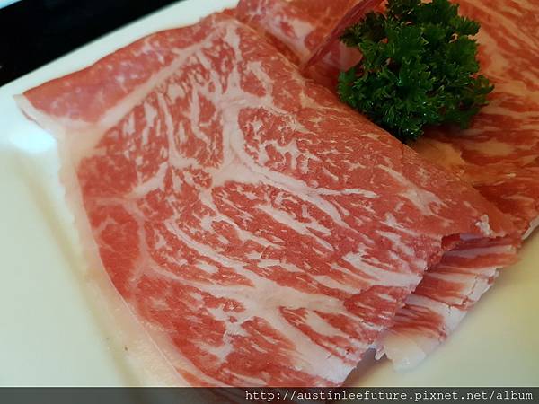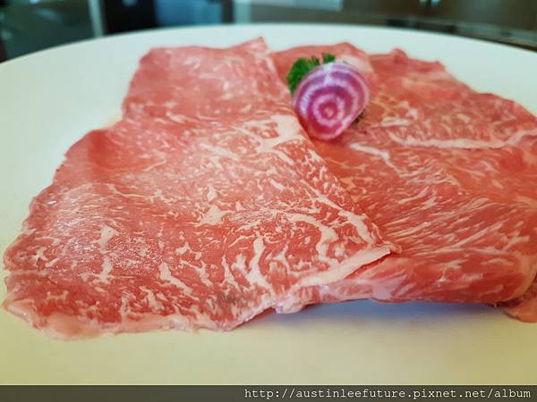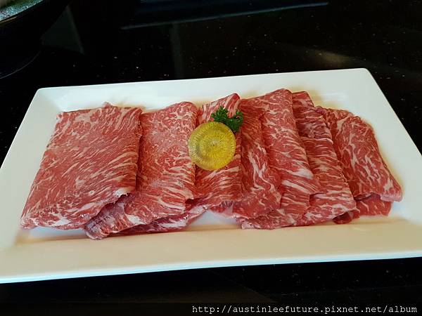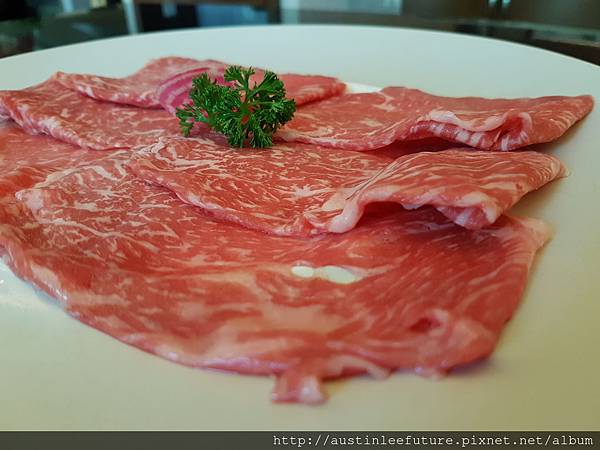 後來問了服務生,和牛單點吃到飽可以點豬肉嗎?服務生說若是客人不吃牛的會供應豬,但這不是我要的答案,我只是想吃看看這裡提供的豬肉品質好不好,所以我跟服務生說我可以點一盤豬肉嘛?服務生說可以啊,那牛肉也要再來一盤嘛?(真機靈!)好啊好啊!牛肉也再來一盤