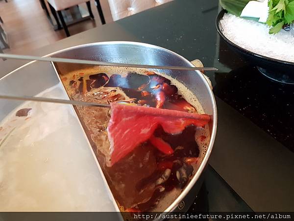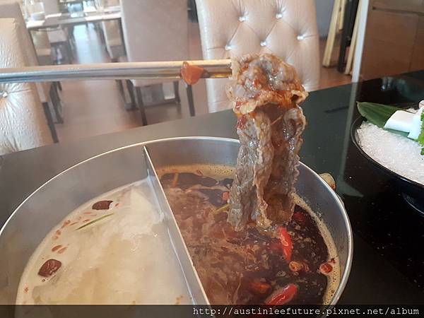 麻辣的部分之前就有說過,它並不會很辣,是很輕微辣,而且跟大陸那種紅油都很麻非常不同,我想這是礁溪長榮鳳凰的主廚有針對台灣人的口味調整過,所以雖有花椒香但是不太有麻度,所以整鍋紅鍋有香氣但不麻不辣,這或許是優點也是缺點,畢竟很多人是嗜吃辣,也有少部分台灣人喜歡麻,那可能對這鍋會很失望吧