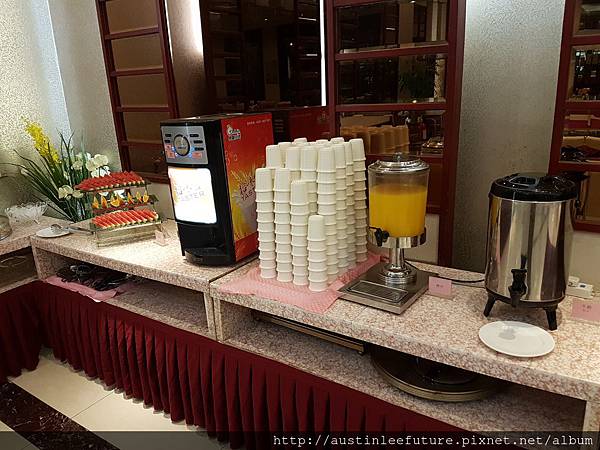 飲料與水果,有熱飲及果汁,還有豆漿,只是熱飲機的熱飲口味上可能台灣人不太喜歡