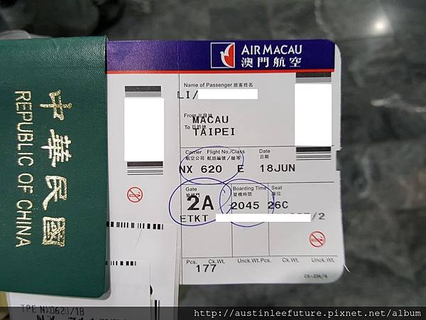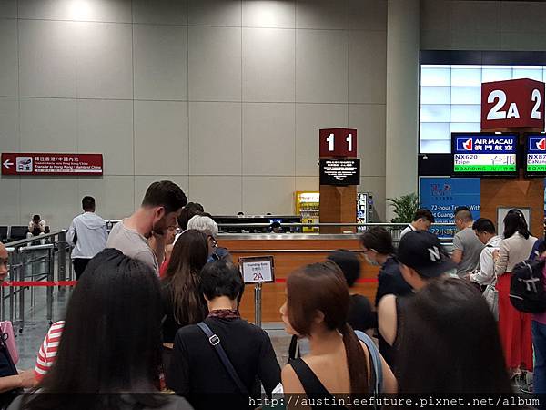 之後,緊接著就是前往澳門航空櫃台辦理登機,櫃檯人員說因為前一班機誤點而且還有空位,如果願意的話可以讓我們改到前一班機,這樣最好啊!