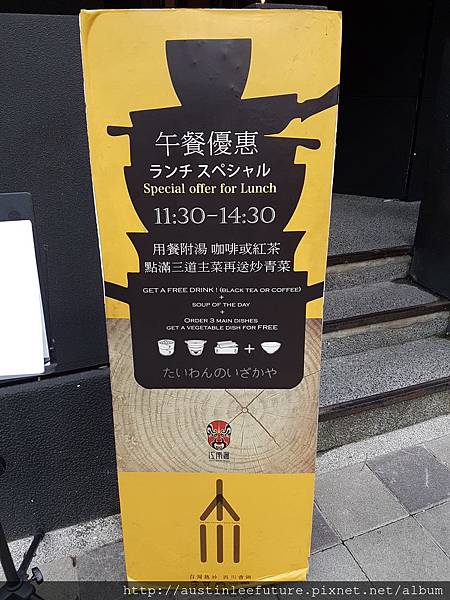 店家是位於 台北市大安區安和路一段145號 的 小川台灣居酒館(安和店),店門口有菜單展示與優惠促銷看板