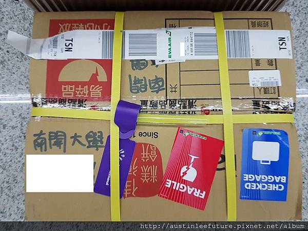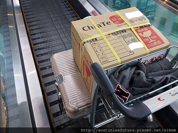 這次要去天津南開大學博士班上課,而且要幫同學們帶東西且之後還要北京天津自助旅行,所以東西有點多,除了 29吋登機箱,還有一箱頗受大陸人喜歡的佳德鳳梨酥