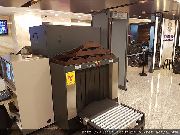 跑出去休息室外照相(剛剛的大門及櫃檯就是此時照的),還有這安檢 X 光機,行李的安檢也都是環宇的人處理,所以不用自己搬啦