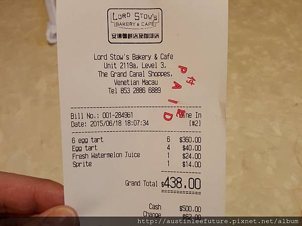 ,雖然在路環總店買比較便宜(一個要便宜一塊澳門幣),但時間與效益因素我也不可能專門再跑去路環買,而且我想要買新鮮剛出爐熱騰騰的,所以就回到威尼斯人這家安德魯餅店及咖啡室購買