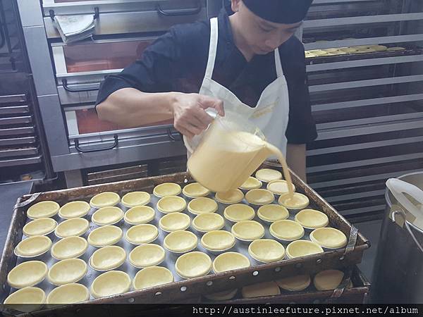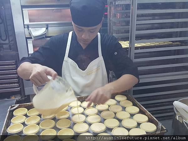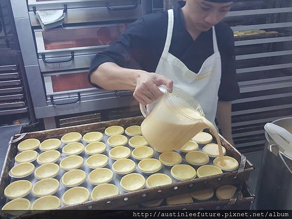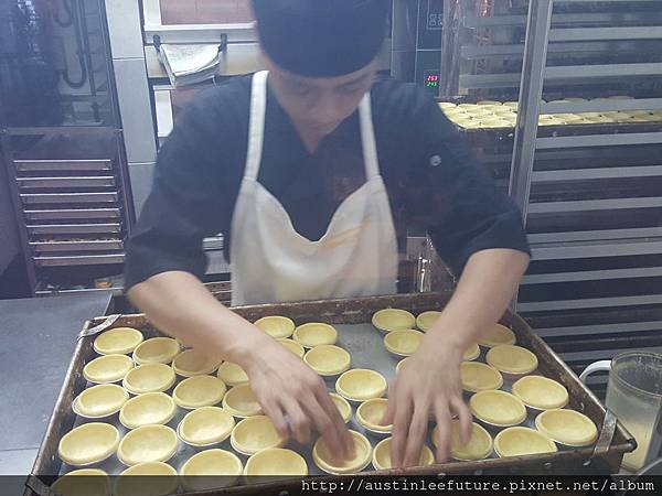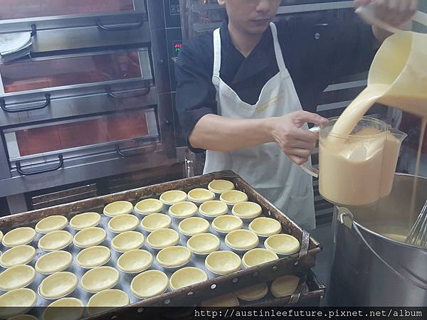 因為店內有他們現烤蛋撻的廚房,是開放式玻璃的,正巧也在烤蛋撻,所以就拍了拍