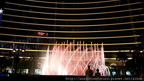 酒店前就是表演湖音樂噴泉,因為鏡頭的關係想拍起永利的mark還真不容易