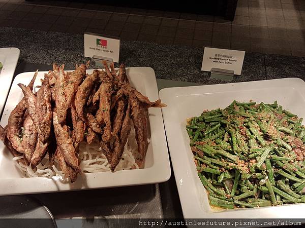香炸多春魚(不知道是不是柳葉魚那種)以及香草牛油炒法鬥豆(應該是四季豆啦)