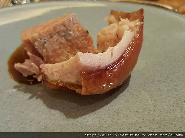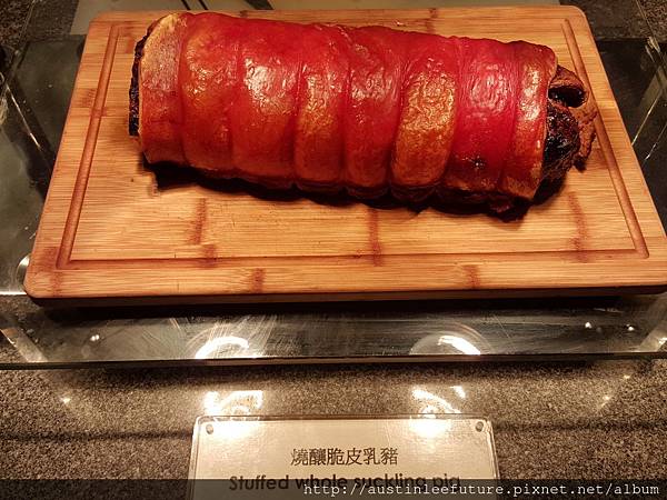 看起來很威的燒釀脆皮乳豬,實際上不及格,因為內部不是真正的豬肉,是類似罐頭肉的東西