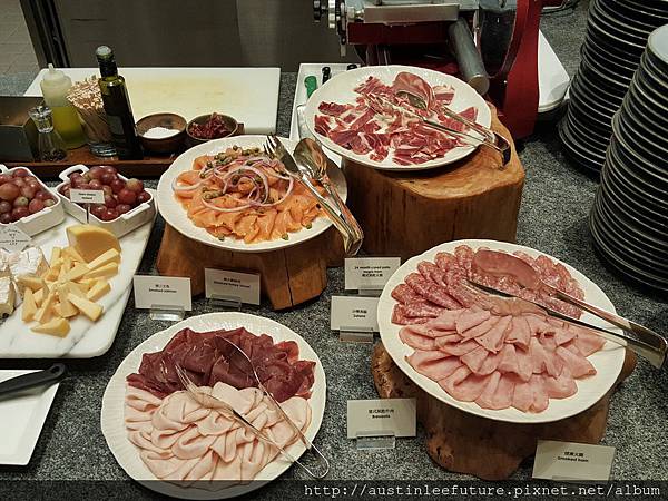 火腿與肉腸薄片冷盤,還有燻鮭魚