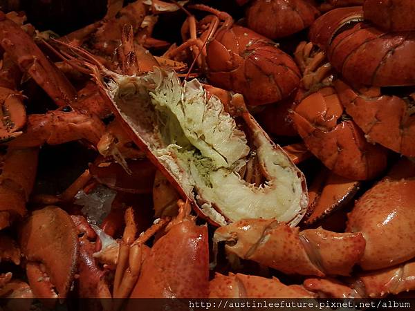 波士頓龍蝦雖然沒有很大,但無限量供應,叉子一拉就可以拉出整條龍蝦肉,非常方便食用,我個人就吃了四五隻啊