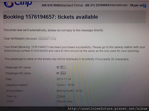 因為攜程還是需要向中國鐵道部官網訂票,所以付款後,還是要等待確認是否訂票成功