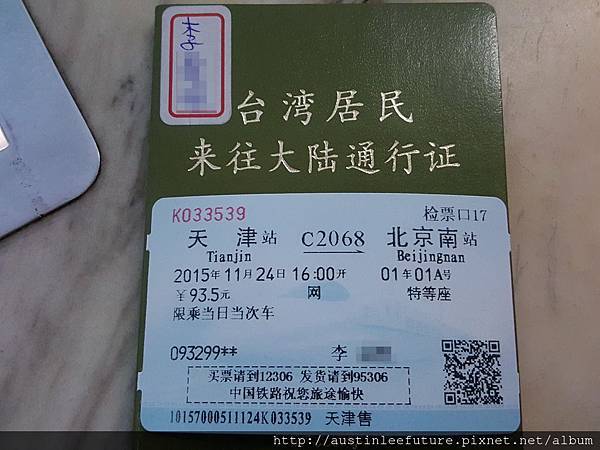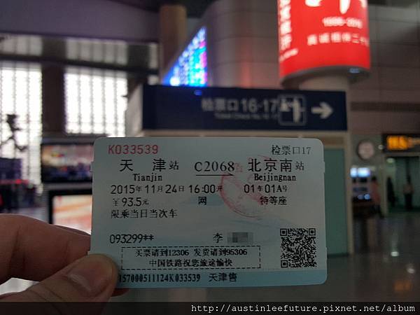 時的經驗分享,當然今年 2016年4月又要前往,一樣航班是天津進北京出,所以這次也會搭乘中國高鐵從天津到北京