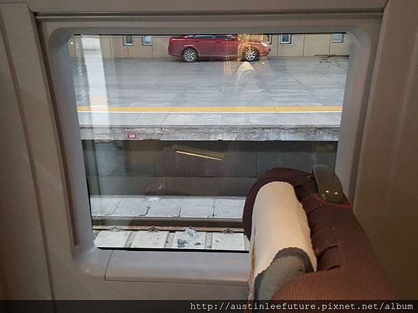 上方就是剛剛的候車大廳,現在已經下到平面月台,等等就要上車啦