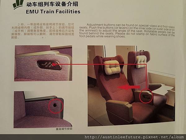 特等座以及一等座的椅子,就跟台灣高鐵商務座位差不多,但是我覺得舒適度還贏台灣高鐵