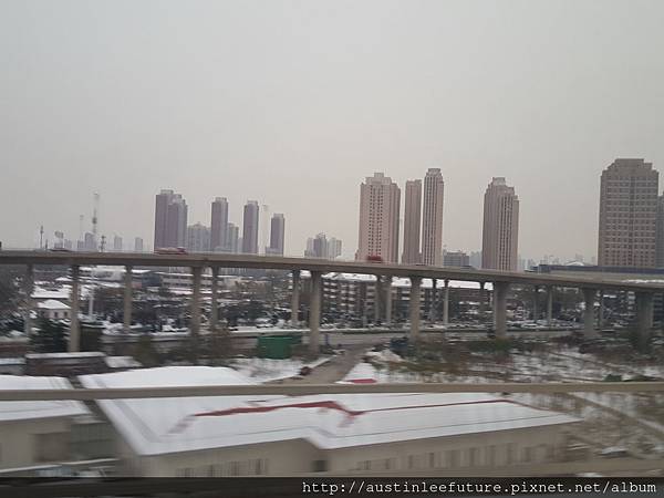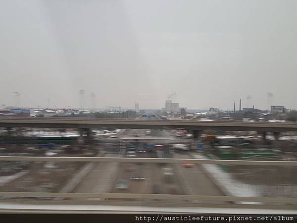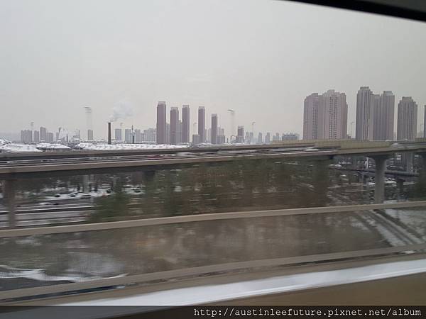 短短 33分鐘就到北京,中途服務小姐會來特等座倒熱茶,特等座獨立空間比較安靜座位也舒適,我有小睡一下子呢!畢竟搭高鐵前幾分鐘有趣拍拍風景雪景,之後就很無聊的度估了