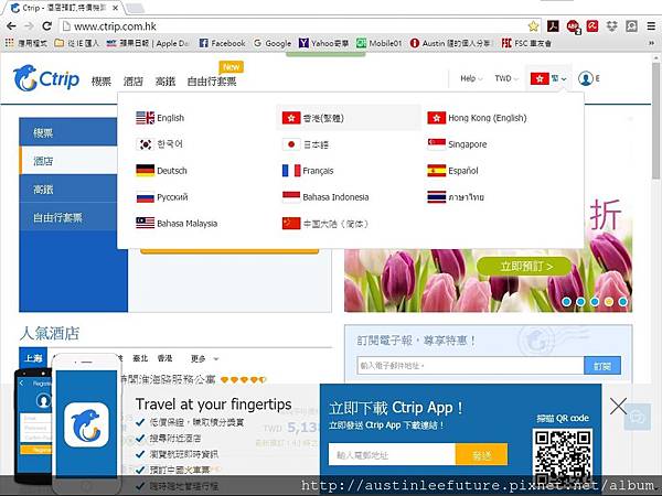 攜程是大陸很大的一家旅行相關網路業者,機票、訂房、自由行及相關票券,以及中國高鐵訂票都有提供服務,而且攜程有香港網站提供繁體中文服務,不習慣看簡體中文的可以選擇繁體中文,而且可以使用中國境外信用卡付款(台灣發行的信用卡,只是需要加收 3% 的處理費)