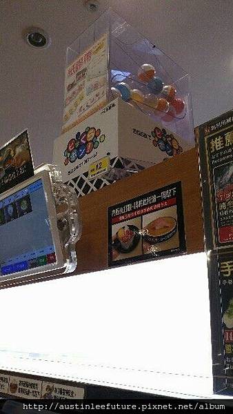 吃完的盤子,可以放到這個回收器中,丟進去五盤可以抽獎一次