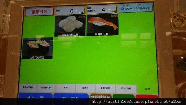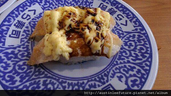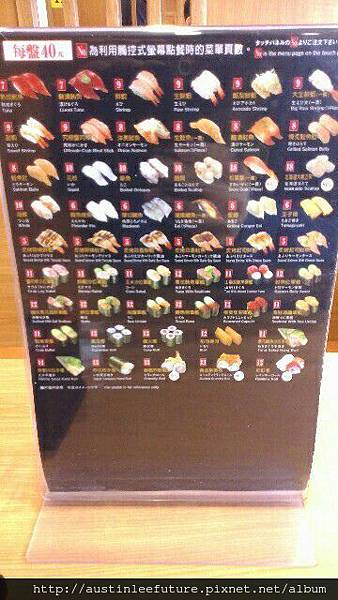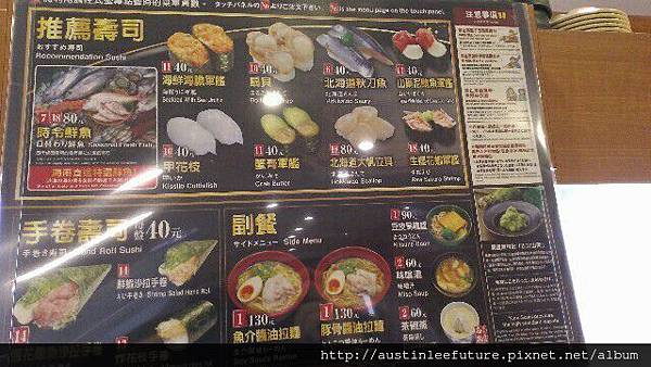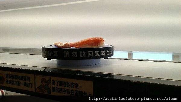 上方則是相較於一般迴轉壽司店多了一條轉盤,這是可以用平板電腦直接點菜,就會很迅速的直接送到桌前,適合我這種想趕快吃到的客人