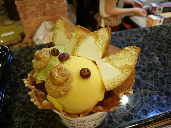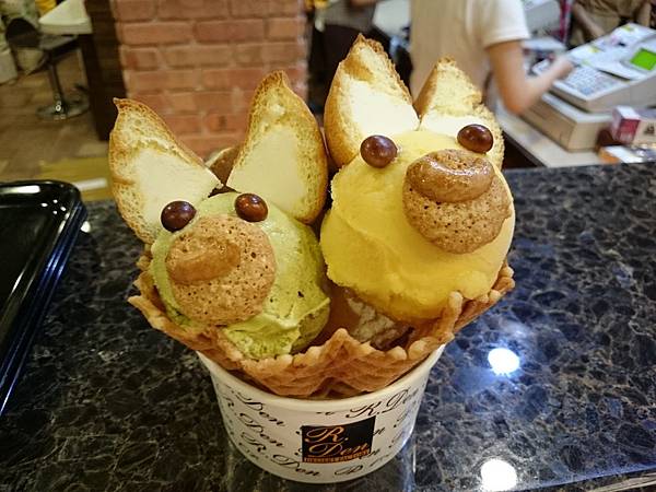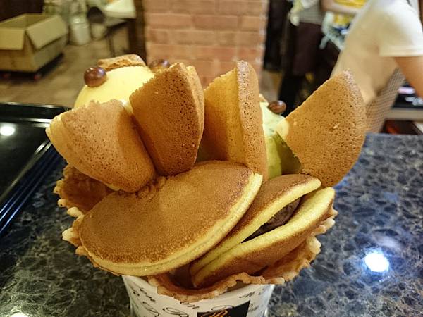 不是只有很單調的冰淇淋,還加了兩個銅鑼燒以及餅乾做造型,好吃又可愛!